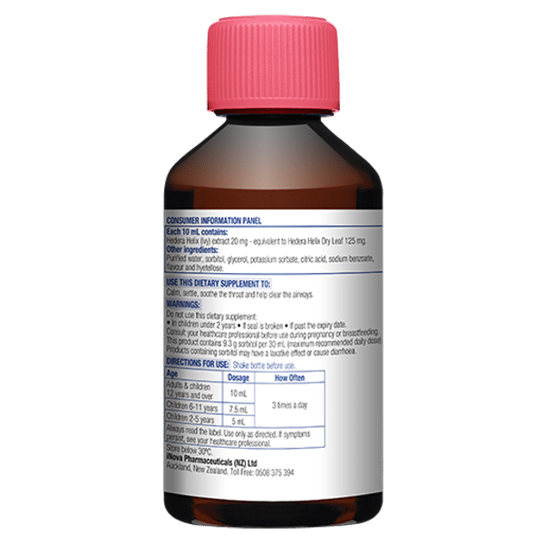Each 10mL of Oral Liquid contains: Hedera Helix (Ivy) extract 20mg (equivalent to Hedera Helix Dry Leaf 125mg).